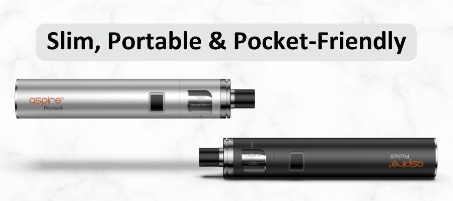 The Aspire PockeX Vape Kit is a slim and pocket-friendly vape pen that's ideal for beginners. The PockeX has been around for years and is Aspire's best-selling device, and it's easy to see why: this vape pen is the perfect first kit! The PockeX AIO (all-in-one) offers a great DTL draw with the included 0.6Ω (ohm) PockeX coil, and can provide a smooth MTL vape with the included 1.2Ω (ohm) coil.