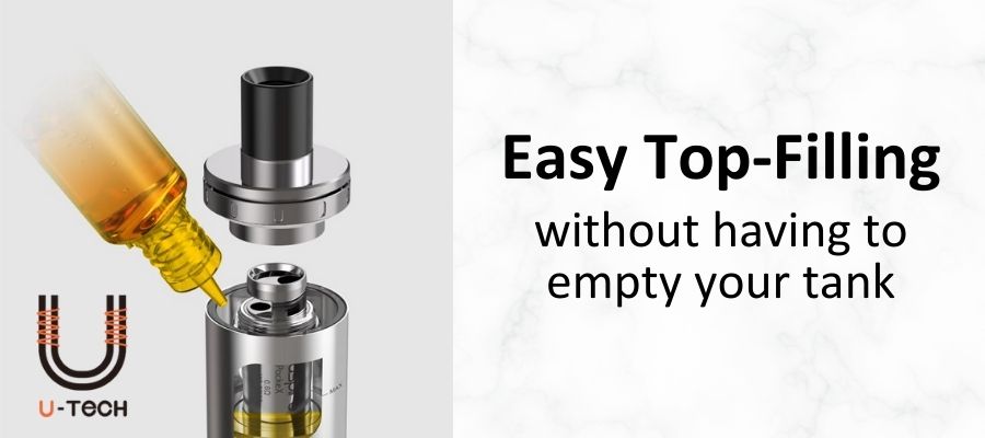 The PockeX's 2ml tank is easy to fill via its top-fill mechanism and has a clearly marked max E-Liquid line to help avoid over- and under-filling. The PockeX tank also features an easy coil swapping system that lets users change the coil without having to empty the tank.