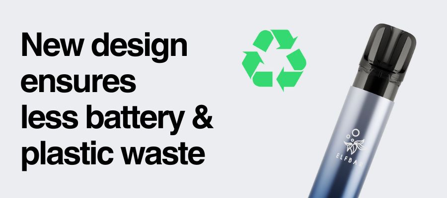 The Elfa Pro kit improves on the original Elfa kit with its greener design, which was created to reduce both battery and plastic waste. Plus, the improved Elfa Pro pods feature a transparent shell so you can keep an eye on your E-Liquid levels!