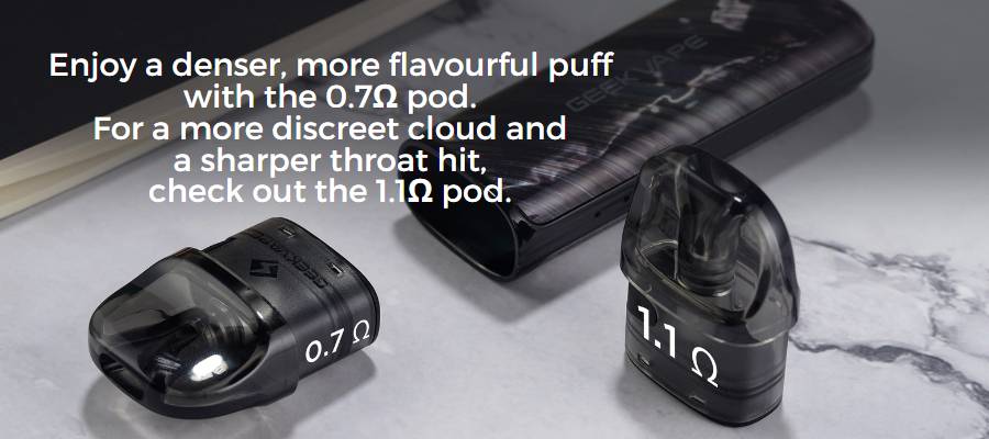 The Obelisk U utilises the popular GeekVape U Replacement Pods, which are sold in packs of 3 and feature easy side-filling and a strong magnetic connection to ensure your pod never falls out unintentionally. You’ll receive one of these pods with your purchase of the kit: the 0.7Ω (ohm) pod. There is also a 1.1Ω (ohm) version option available to purchase separately.