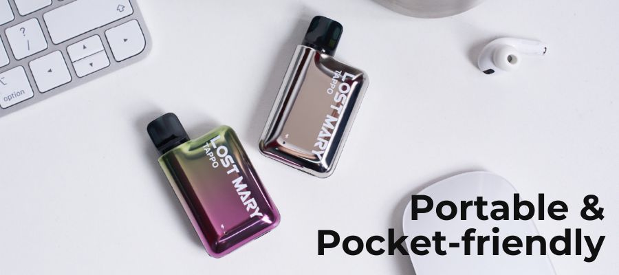 The Lost Mary Tappo pod kit looks like the Lost Mary BM600 disposable vape range, with a similar shape and the benefit of a metallic shell.