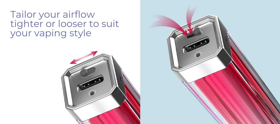 The Crystal Plus Airflow Edition has no buttons, so you only need to inhale on the mouthpiece to vape. Plus, it offers adjustable airflow via a toggle on the bottom, so you can tighten or loosen your draw to suit your vape style.