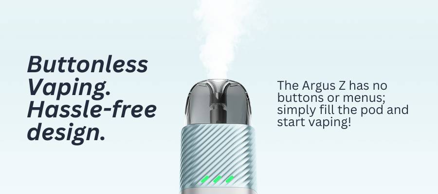 The VooPoo Argus Z Pod Kit is a sleek, user-friendly MTL vape kit designed for vapers seeking simplicity and performance. Featuring a robust 900mAh internal battery and inhale activation, this device eliminates the need for complex buttons or settings, making it an ideal choice for beginners.