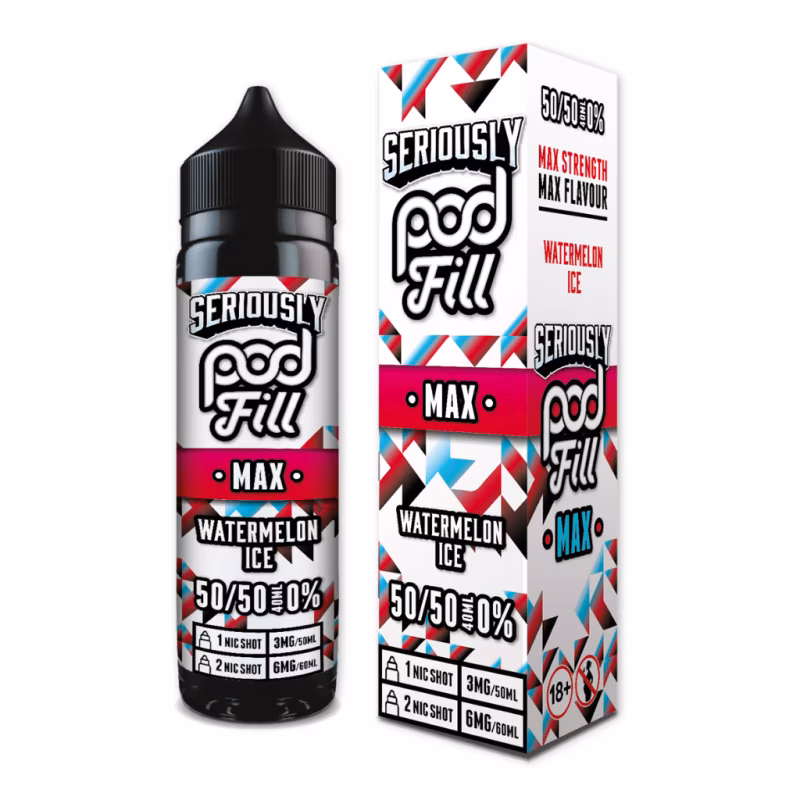 Experience the ultimate refreshment with Watermelon Ice Shortfill E-Liquid by Seriously Pod Fill Max 40ml. This premium shortfill combines juicy, sun-ripened watermelon notes with a crisp menthol finish for a perfectly balanced all-day vape. Crafted with a 50% VG ratio, it is designed specifically to deliver intense flavour in pod kits and starter devices.