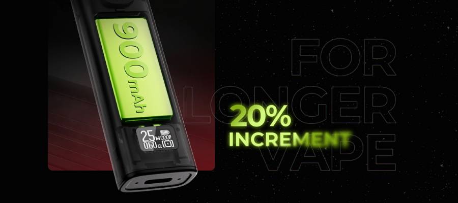 Powering your vaping sessions is an internal 900mAh battery, ensuring you're set for extended periods. With the convenience of USB Type-C charging, getting back to full power is both fast and efficient, and yes, the charging cable is included in the kit.