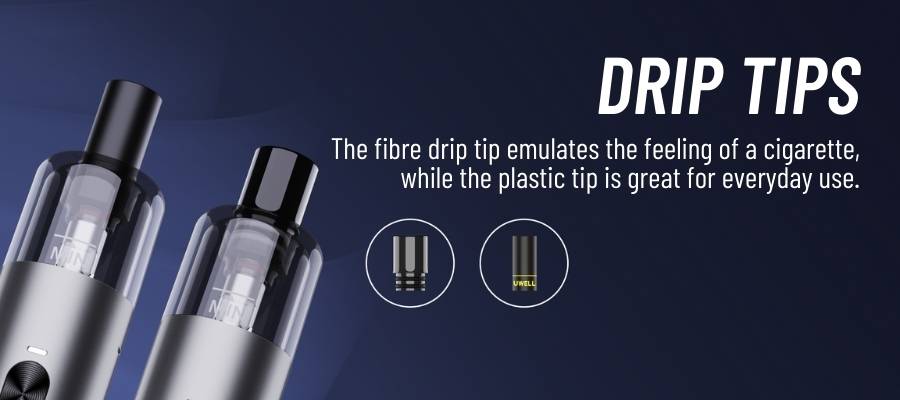 The Whirl S2 is an excellent choice for recent ex-smokers thanks to its replaceable fibre drip tips, which can be used in place of the standard mouthpiece to evoke the feeling of a cigarette.