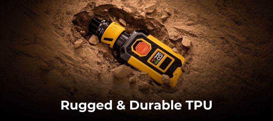 Powering this beast are two 18650 or 21700 vape batteries (sold separately), offering unmatched longevity for your vaping sessions. Charging is efficient with a Type-C USB port, though as with all external batteries, we recommend using an external vape battery charger, as charging your batteries through the device will degrade them over time.