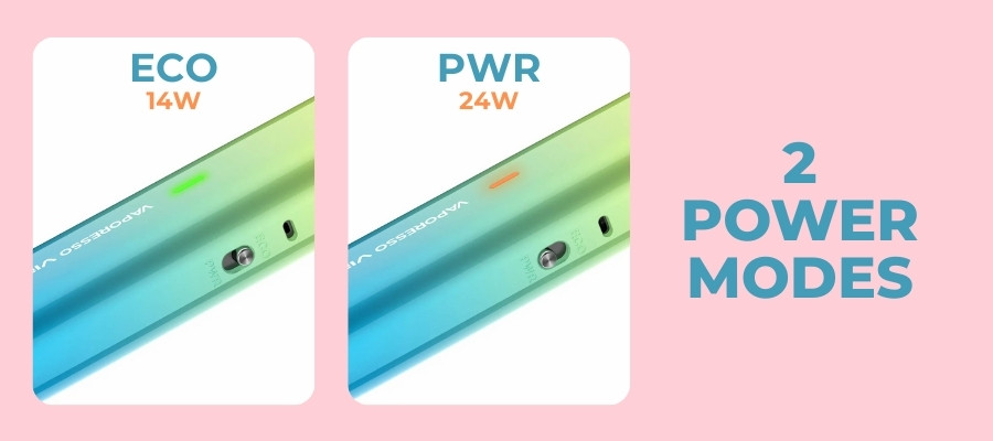 The kit includes one pod that supports two power settings—0.6Ω for a more powerful, flavour-rich vape at 24W (PWR Mode), and 0.8Ω for a smoother, more efficient vape at 14W (ECO Mode). This allows users to tailor the vapour production and throat hit to their preference.