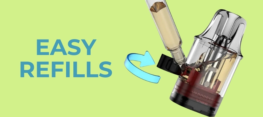 The Vibe SE is compatible with the Vaporesso Vibe pods, with 2 versions available. Each refillable pod holds 2ml of E-Liquid and features a built-in dual mesh coil with 2 resistances in one.