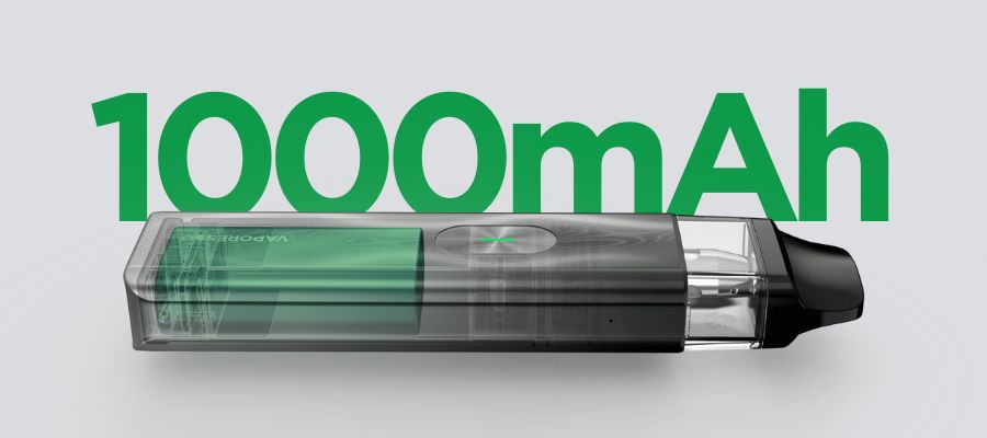 The XROS 4 Mini is equipped with a built-in 1000mAh battery, sufficient to support at least a day of vaping for most users. The device can be recharged via the USB Type-C charging port using the included USB-C cable.
