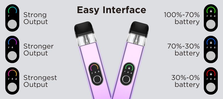 The LED screen interface is easy to navigate with no confusing menu settings, and the button can be locked to prevent accidental pocket firing. The XROS 4 features three output modes, allowing users to customise their vaping experience.